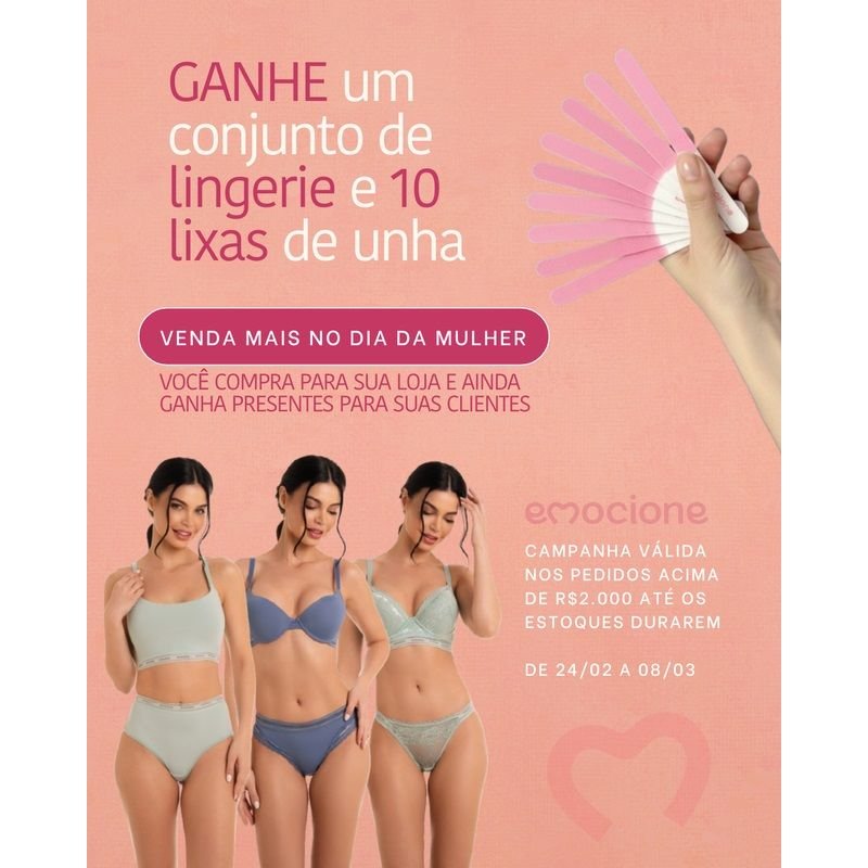1 CONJUNTO + 10 LIXA DE UNHA. ESPECIAL DIA DA MULHER : Brinde dia da Mulher Facebook X Pinterest WhatsApp : - + : OK × : 1x R$ 0,00 : R$ 0,00 ×
